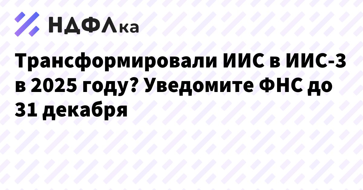 Это актуально для тех, кто в течение 2025 года провел так называемую "трансформацию" ИИС — перевел "старый" счет типа А или Б в новый ИИС третьего типа (ИИС-3) через брокера. Сам факт проведения операции у брокера недостаточен — его необходимо закрепить официальным уведомлением в ФНС.