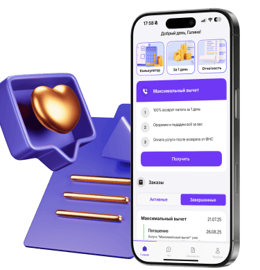 Для получения вычета вам нужно обратиться к нам. Это можно сделать по телефону или оставив заявку у нас на сайте. Мы перезвоним, обсудим вашу ситуацию, рассчитаем максимальный размер вычета, определим пакет документов, необходимых для оформления, подготовим и подадим декларацию в налоговую. И уже через один день вы получите деньги на свою карту