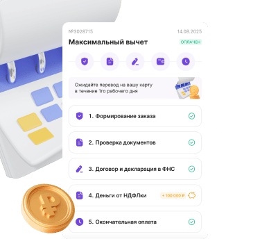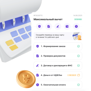 Принятые документы ФНС + мгновенное перечисление вычета на ваш счёт